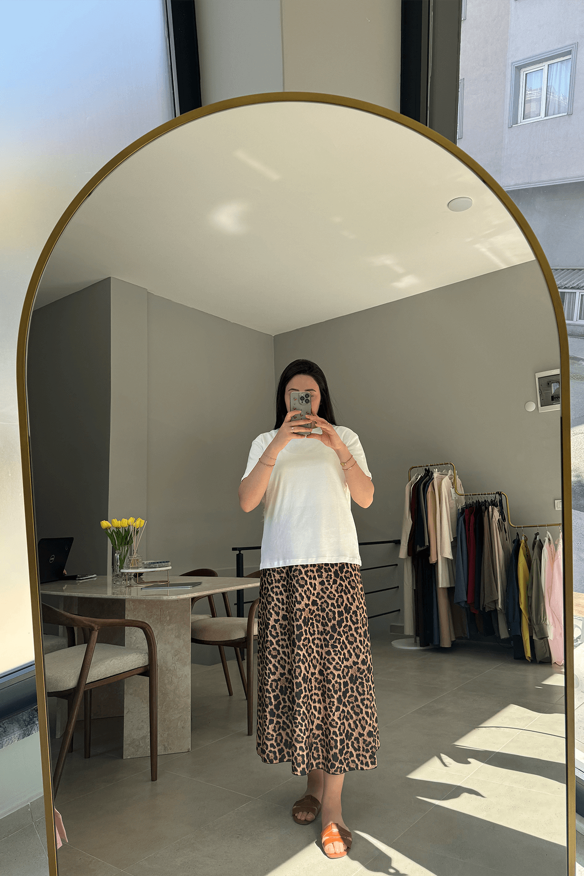 - Leopar zaten iddialı bir desen olduğu için üst parçaları sade tutmak genellikle iyi bir fikir.